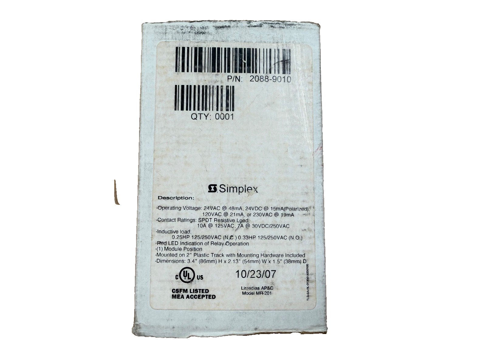 Simplex 2088-9010 Fire Alarm MR-201C Relay (NEW IN BOX)